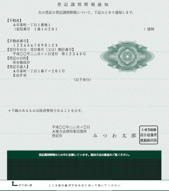 登記識別情報とは昔で言うと不動産権利証になります。