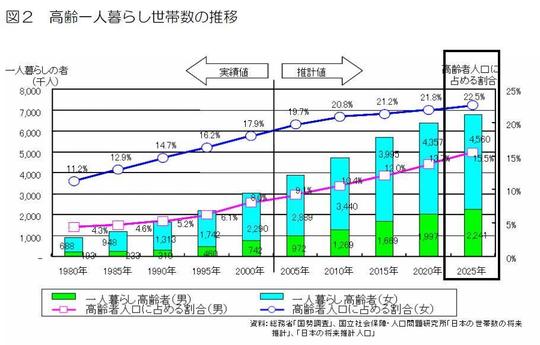 現役世代の子供と同居をしない1人暮らしの高齢者が年々増加しています。別々に居宅を構える 1人暮らしの高齢者は当然のことながらそうでない高齢者に比べますと生活費が多くかかることにります。